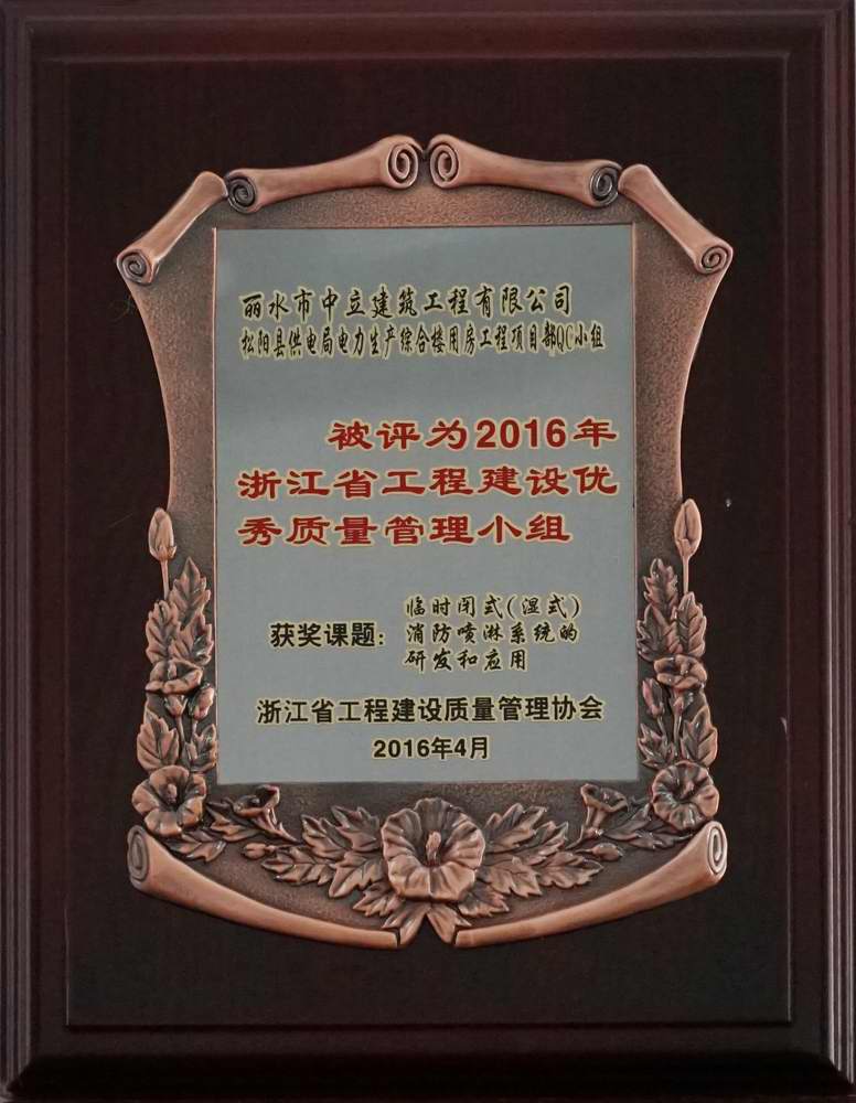 松陽(yáng)電力項(xiàng)目部QC小組榮獲2016年浙江省工程建設(shè)優(yōu)秀質(zhì)量管理小組稱號(hào)