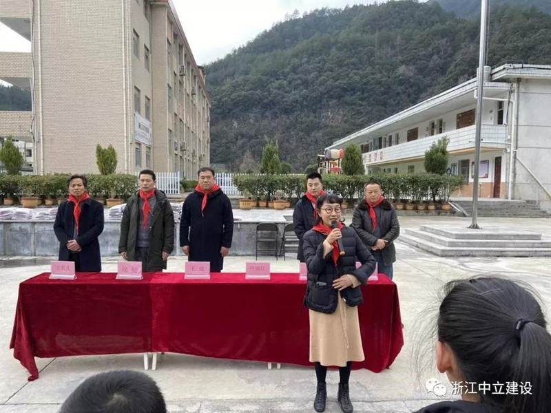 新年伊始,恰逢臘八,浙江中立建設有限公司帶著81套校服走進遂昌大山深處的黃沙腰小學,給大山里的孩子送去冬日里的溫暖。公司副總經理葉麗紅、項目負責人曹亮、黃沙腰鎮鎮長毛威、黃沙腰鎮人大主席涂挺、遂昌縣教育局黨組成員王其孔、黃沙腰小學校長葉益明出席了捐贈儀式。在捐贈儀式上葉麗紅希望同學們刻苦學習,立志成才,不負韶華,回報社會,回報祖國。葉校長致辭對捐贈校服的善舉表述了衷心的感謝。校優秀少先隊員王夢媛致感謝詞:“叔叔阿姨們,請相信我們,我們會努力學習,去創造一片屬于自己的絢麗天空;我們會努力學習,早日成為國家的棟梁,為家鄉建設貢獻自己的力量。我們堅信一定不會讓你們失望!”
